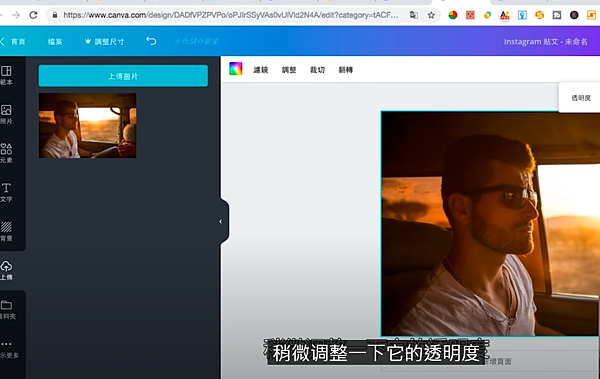 把它放上去 稍微調整一下它的透明度 同時可以調整一下它的飽和度和對比度